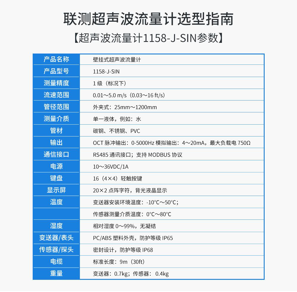 您的位置:首頁 > 超聲波流量計 → 聯(lián)測_1158-J-SIN 壁掛式超聲波流量計 <升級款>DN50-DN1200_
