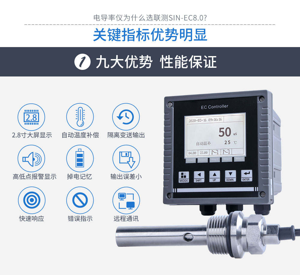 您的位置:首頁(yè) > EC/電導(dǎo)率儀 → 聯(lián)測(cè)_SIN-EC8.0在線電導(dǎo)率儀_RO過(guò)程_水處理_CIP清洗_海水淡化