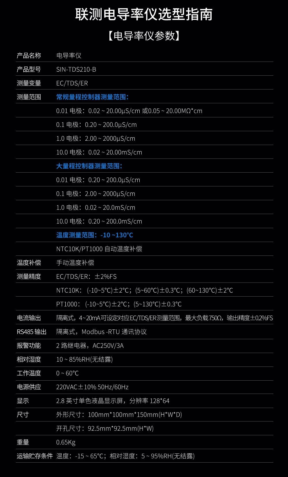 在線電導(dǎo)率儀是新一代全中文微機(jī)型儀表,具有全中文顯示、中文菜單式操作、全智能、多功能、測(cè)量性能高、環(huán)境適應(yīng)性強(qiáng)等特點(diǎn)。二次表配上常數(shù)為1.0或10的電極可測(cè)量一般液體的電導(dǎo)率;配上0.1或0.01的電極,能準(zhǔn)確測(cè)量純水的電導(dǎo)率,特別適用于電廠鍋爐給水和蒸汽冷凝水等高純水電導(dǎo)率的在線連續(xù)監(jiān)測(cè)?! ÷?lián)測(cè)_SIN-TDS210-B在線電導(dǎo)率儀 EC儀 TDS 電鍍行業(yè)、污水、循環(huán)水等檢測(cè)_