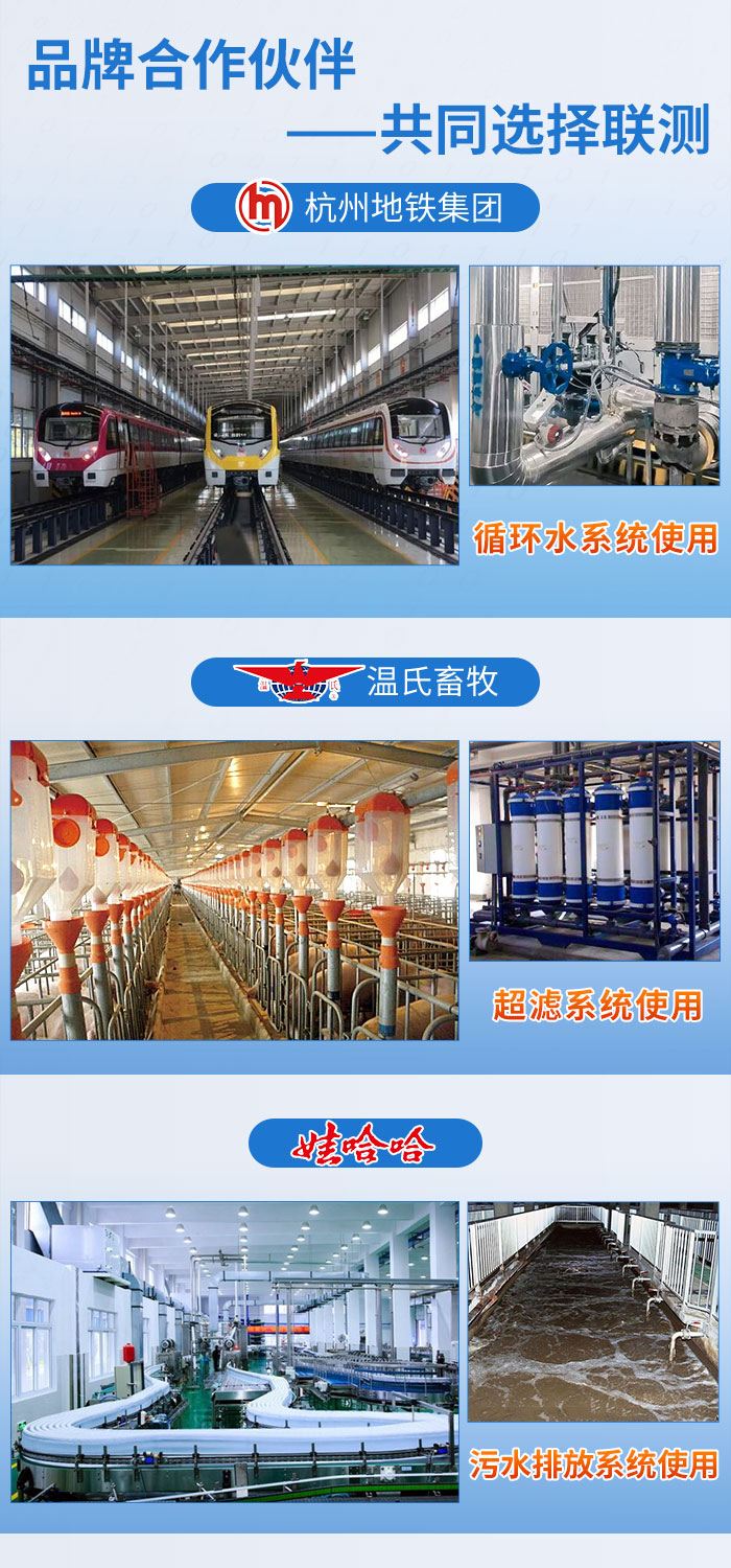 近年來,聯(lián)測儀表廣泛應用于各大領(lǐng)域,與國內(nèi)品牌杭州地鐵集團、溫氏畜牧、娃哈哈......達成合作,專業(yè)的技術(shù),敬業(yè)的服務(wù)贏得了諸多企業(yè)的信賴與支持。本次合作也給客戶留下了良好的印象,好評連連,溫州繞城高速公路有限公司表示,后續(xù)多個站點會批量使用我司電磁流量計。