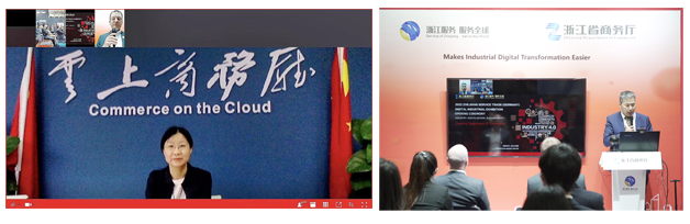 此次漢諾威工博會(huì),我司同阿里云、三維通信、舜云互聯(lián)、申昊科技等多家浙江知名企業(yè)共同亮相浙江省商務(wù)廳主辦的2022浙江服務(wù)貿(mào)易(德國(guó))數(shù)字工業(yè)展,向全世界展現(xiàn)“浙江服務(wù) 服務(wù)全球”的魅力。當(dāng)?shù)貢r(shí)間5月30日上午,浙江省駐德國(guó)商務(wù)代表處主任張漢東在現(xiàn)場(chǎng)主持工業(yè)展開(kāi)幕式,浙江省商務(wù)廳服務(wù)貿(mào)易處處長(zhǎng)莊謹(jǐn)在線出席開(kāi)幕式。