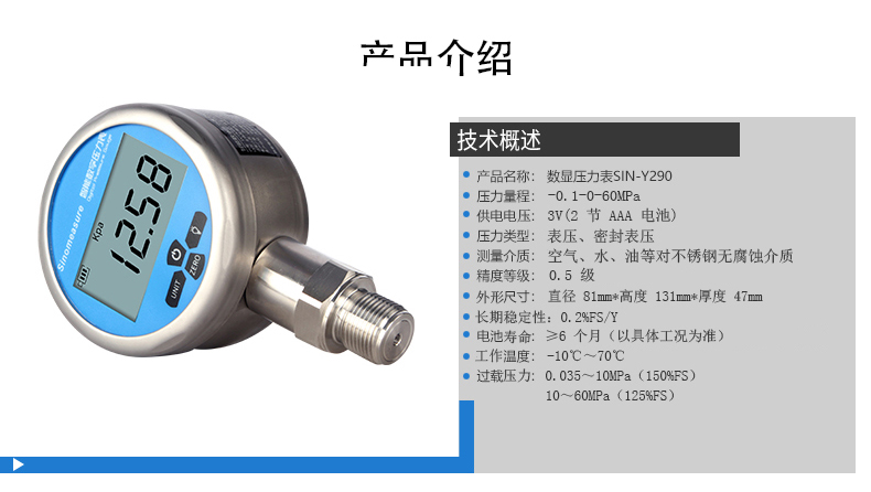 聯(lián)測數(shù)顯壓力表Y290,內(nèi)置高精度壓力傳感器,能夠 準(zhǔn)確的實(shí)時(shí)顯示壓力,并且具有精度高,長期穩(wěn)定性好 的特點(diǎn)。