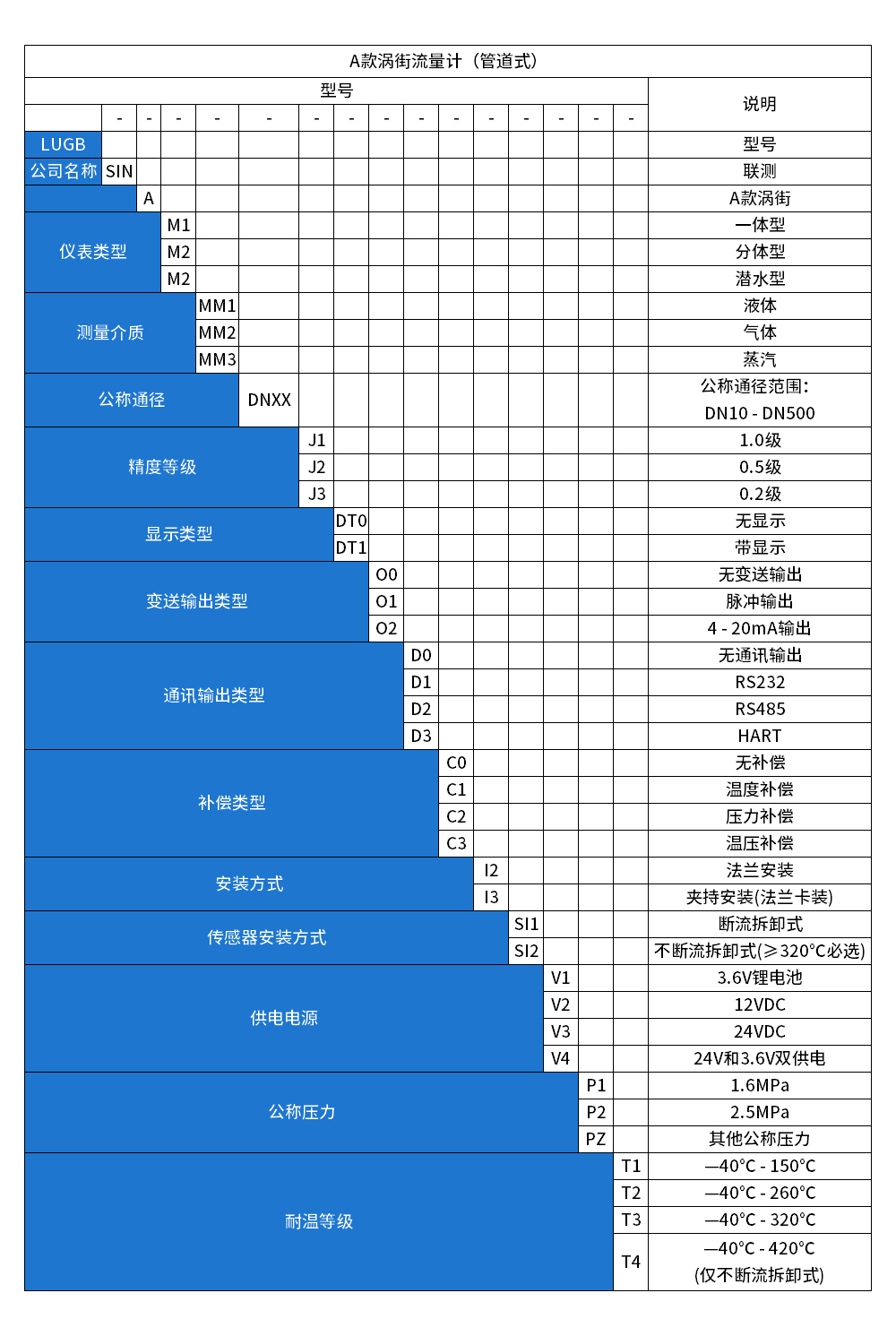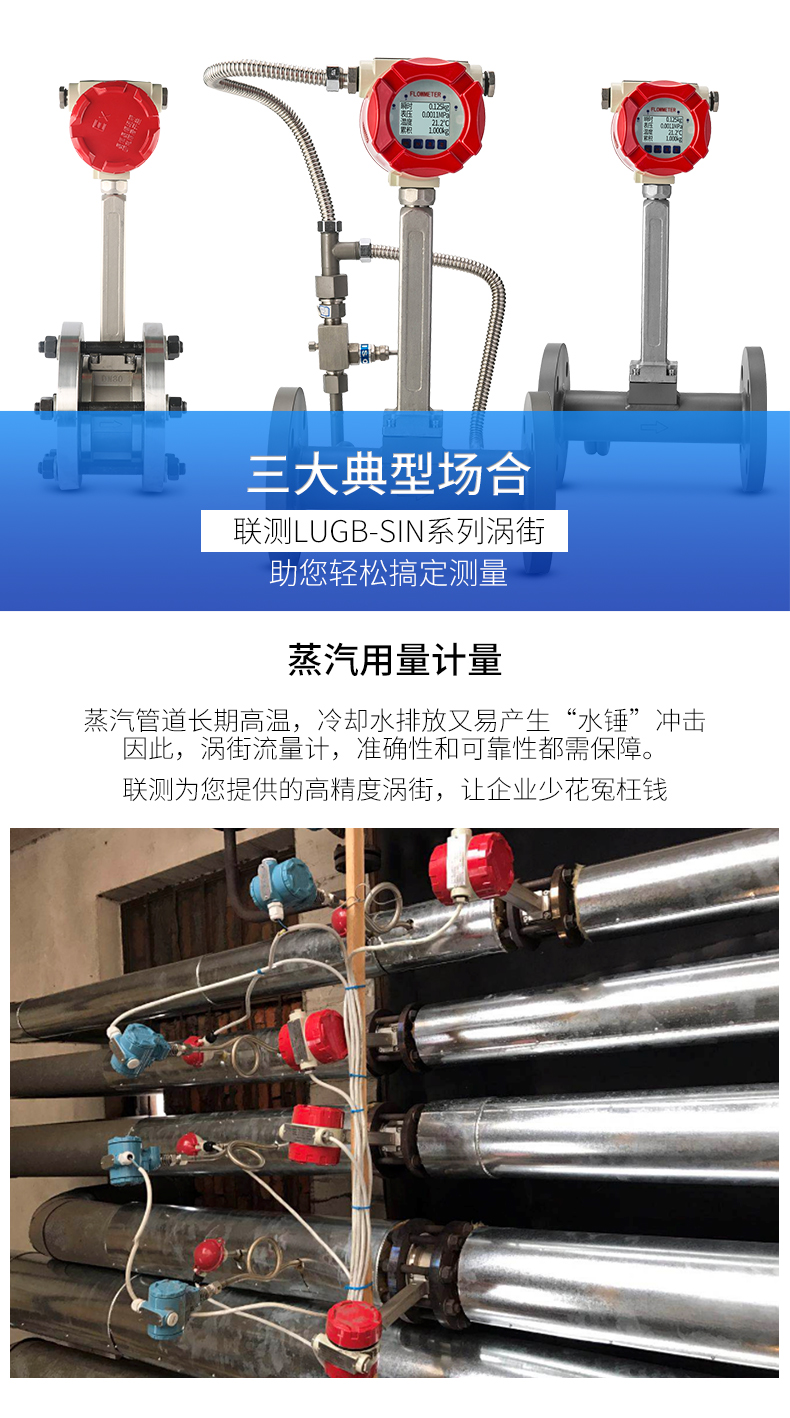 LUGB-SIN-A渦街流量?jī)x表廣泛用于供熱公司、熱力公司、化工行業(yè)等行業(yè),對(duì)過(guò)熱蒸汽、飽和蒸汽、壓縮空氣和一般氣體、水和液體的計(jì)量和控制。加厚本體,可有效避免現(xiàn)場(chǎng)管道振動(dòng)帶來(lái)的數(shù)據(jù)波動(dòng)和誤差。多用于高溫場(chǎng)合,例如過(guò)熱蒸汽等工況。