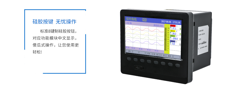無紙記錄儀是將采集的數(shù)據(jù)/運算數(shù)據(jù)以時間為基軸記錄在儀器內(nèi)部的存儲系統(tǒng)中,無消耗任何常用的記錄設施,如:紙張、筆墨。記錄在儀器內(nèi)部的存儲數(shù)據(jù),通過運算、模擬后顯示在液晶屏。常用顯示用液晶屏比較廣泛。在液晶屏屏幕上,可以顯示數(shù)字顯示、棒圖顯示、曲線顯示、報警列表等。無紙記錄儀采集的數(shù)據(jù),常用的有:溫度、壓力、流量、液位、電壓、電流、濕度、頻率、振動、轉速等。