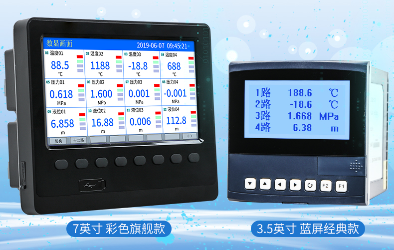 無紙記錄儀是將采集的數(shù)據(jù)/運(yùn)算數(shù)據(jù)以時(shí)間為基軸記錄在儀器內(nèi)部的存儲(chǔ)系統(tǒng)中,無消耗任何常用的記錄設(shè)施,如:紙張、筆墨。記錄在儀器內(nèi)部的存儲(chǔ)數(shù)據(jù),通過運(yùn)算、模擬后顯示在液晶屏。常用顯示用液晶屏比較廣泛。在液晶屏屏幕上,可以顯示數(shù)字顯示、棒圖顯示、曲線顯示、報(bào)警列表等。無紙記錄儀采集的數(shù)據(jù),常用的有:溫度、壓力、流量、液位、電壓、電流、濕度、頻率、振動(dòng)、轉(zhuǎn)速等。