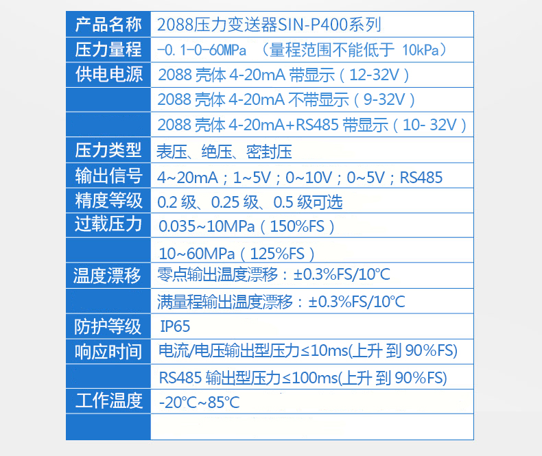 SIN-P400壓力變送器,采用全數(shù)字電路板,做到用戶可在一定范圍內(nèi)自行現(xiàn)場修改量程,極大的方便了現(xiàn)場使用。