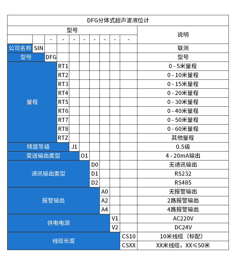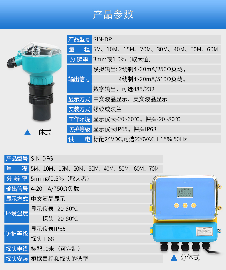您的位置:首頁 > 超聲波液位計 → 聯(lián)測_SIN-DFG_基礎款_分體式超聲波液位計/物位計/水位儀 污水 料位液位測量_
